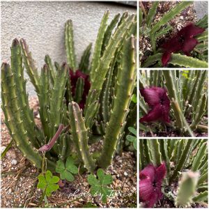 友人宅のお庭で 変わった花が咲いていて何だろうと 検索してみたら スタペリア•グランディフローラとか フェルニア•シュナイデリアナとか出るし いったいどっちなんだい 棘が見当たらない そう、多肉植物なんだって へー🫠 こちらも同じ友人宅 この寒い中紫陽花が未だ咲いてました 狂い咲きだわね😵💫 3枚目は雑木林の中の萩の花 4枚目 近所の輸入品(イギリス🇬🇧)を取り扱う園芸店のグレビレア