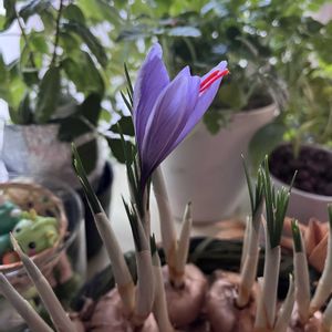 今朝 サフランのお花が咲いたヨン♬ 花びらを開いて🤛 雌しべを回収 乾燥させてスパイスに✨ 🐸🐸🐸 ◉ ◉ ( ○ ) ご無沙汰してまする 訪問できずにごめんなさい🙇♀️ 皆さまの温かい見守りに 感謝しております🙏✨