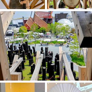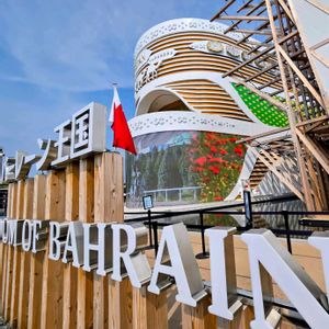 -木組みが美しいバーレーン館🤍- 4層建築の大型船に乗って旅する感じが 素晴らしかったです 海洋文化や真珠貿易などが興味深く紹介されていました🎵🚢 GS的には、バーレーン館から見た木々の緑がとても美しい眺めです🌳 木々の後ろには、赤いオーストリア館と白のスイス館も見えています バーレーン館の超ミニミニのカフェのテーブルや椅子はとてもかわいらしくて、 バネがビヨヨ〜ンと伸びるところがおもしろいのでした🎵😊 カフェのオレンジブロッサムレモネードは サウジアラビア館のハバクレモネードのように最高においしくて🍊🥤 サウジ館の水の物語に似たプロジェクションマッピングを眺めながらのランチ体験ができました🍴