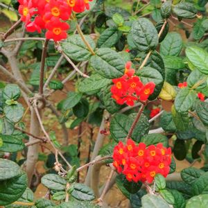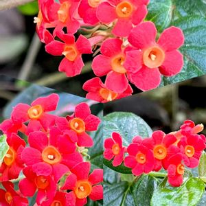 温室で咲いていた花 🌱ベニマツリ アカネ科 朱色が綺麗で離れた場所からも綺麗でした