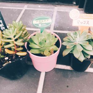 陶器に穴を開けたいなーと思い、ビットを購入しに近所のコーナンへ。 そこで思いがけない出合いっ!! 以前にも言いましたが、ホームセンター産の多肉ちゃんたちはビギナーの私にとっては手に負えないものばかり💦 ですが、今日はキレイな子達がたくさんっ🎵 予定にはありませんでしたがついつい購入してしまいました(笑) 何気にクラッスラは初。 着々とエケベリアが増えてます。 クラッスラ属 リトルフロッジー エケベリア属 野バラの精 エケベリア属群月花