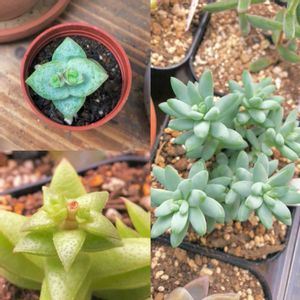 解体して寄せ直し🍀 セダムは暴れるから入れなーい🤣 上のセンペルビウム これだけ入っててセダムもあったんだから 育つわけないょねー😅 これも入れすぎだけどー笑 下はチビ苗を追加して育成鉢にしたよ のびのび成長させましょう⤴️⤴️