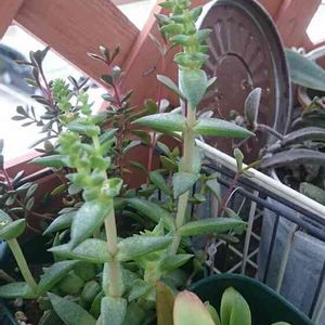 おはようございます(*^^*) 今朝は、8月とは思えない涼しさ✨多肉にも優しい気候です😆 今朝は、高千穂(たぶん)。 春にカットしたところから出たのは花芽でした🌼