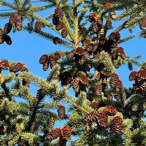 いわゆるモミの木 と思うけれど 松ぼっくりがたわわ⁈ 今年は多い気がするけれど 散歩道で