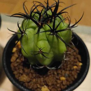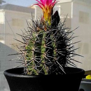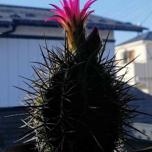 もしかしたらサボテン界でもっとも中二病っぽい和名が付いている、エリオシケ属の暗黒王さんです! チリの海沿い、年間降水量が200ミリもないようなところが故郷だそうで、ひなびた佇まいが何ともかっこいいサボテンだなと思うんですが、頭の上のビビッドなお花とのミスマッチ感はこの時期だけ🤭