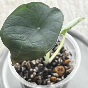 うちのまだ小さなかわいいアロカシア チャイ ここに来た時は葉先が萎れた茎から新芽が上がってきてる状態。 しばらくして元の葉は切り落とし 3枚目・小さな1本で頑張ってました🥹 2枚目・やっと新しい葉が出てきて あと少しで開き切るなー👀と見てみたらこれ。 なんか細かく斑っぽい! 突然過ぎる突然変異か😂🎉 でもいつか欲しいと思ってるんだけど よく海外のSNSとかで見る 完全に白とグリーンの感じとは違うよね🤣 葉がボコボコしてる感じはよく分からないけど笑 全開が楽しみです〜♪