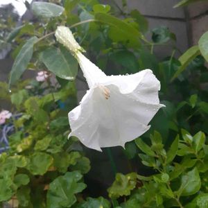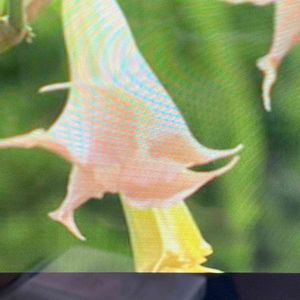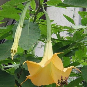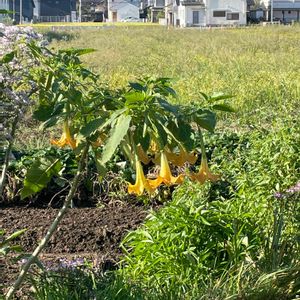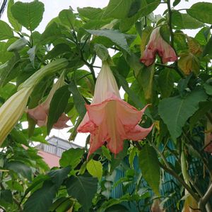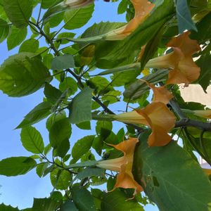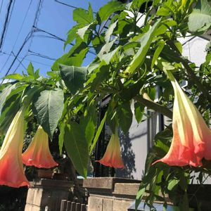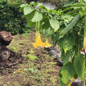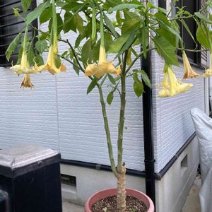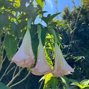松江フォーゲルパークにて 見知らぬ名前の木💚3mは超えてるね👀 説明を読むといわゆるエンゼルストランペットでした👼