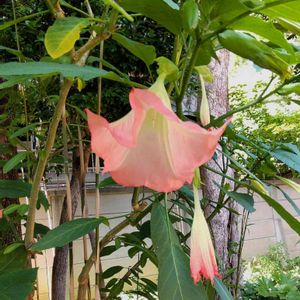 我が家で初めてエンゼルストランペットのお花が咲きました♫ ପ(๑•ᴗ•)>⊆ⅲ⊇◁♪♪♪