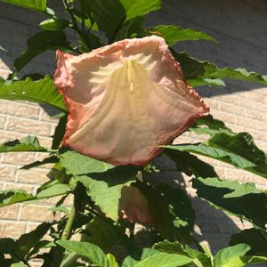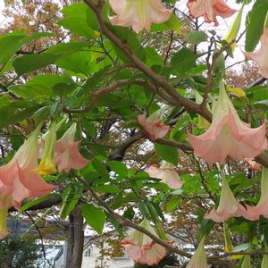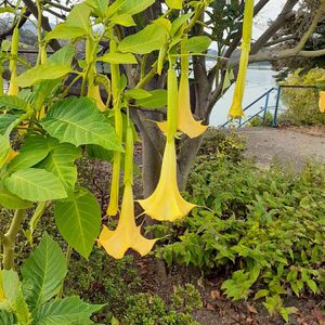 6月に投稿した用水沿いのエンゼルストランペット🎺(チョウセンアサガオ)が、また満開でした。花期が長いんですね。