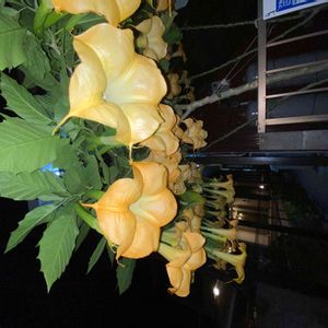 こんにちわ👋😃 別々の所ですが、もりもりのエンゼルストランペットの黄色と白に会いました🎵