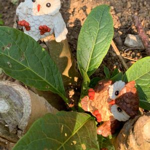こんばんは😊 夕方撮ったので見にくいのですが、エンゼルストランペットの葉っぱにてんとう虫🐞ではない悪いヤツですよね⁈ 2匹も‼︎ これは退治した方が良いですか⁉️ フクロウちゃんに一緒に写ってもらいました‼️ フクロウ🦉祭と幸せを呼ぶフクロウ🦉祭りに参加します‼️
