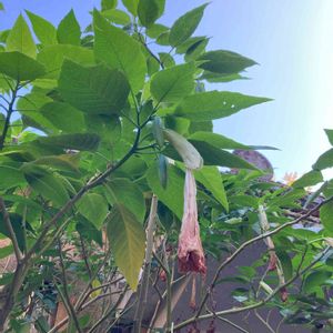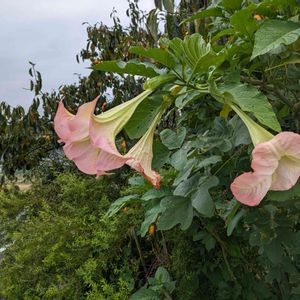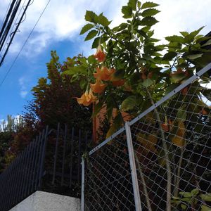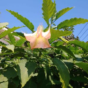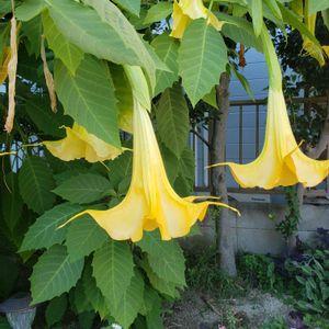 エンジェルストランペット。 和名 キダチチョウセンアサガオ 大きくて目立っていました! 実家の近くの家にはお花とか いっぱいあるので楽しみ♪