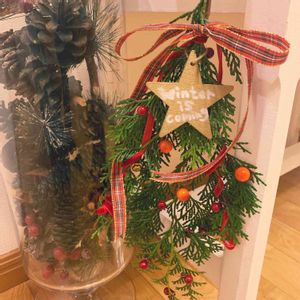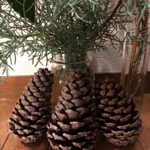 10センチほどの大きな松ぼっくりをもらい、、、このまま装飾して🎄ツリーにしたらよいのか、ワイヤーでもつけて、グリーンとあわせて、スワッグのようなものを作ったらよいのか、、、 何かアイデアがある方、教えてください。 最近は材料があってもなぜか迷うばかり💦