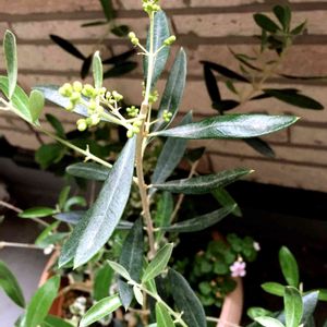 小さな鉢植えのオリーブ。 花が咲けばいいなぁ。