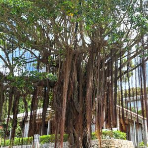 The沖縄の木 ガジュマル 堂々とした石畳のガジュマル 旧崇元寺のはさらに大きい ぶっちゃんと散歩した近くの歩道にも🐕 ͗ ͗ でも街路樹には向かないかな? 落ち根?で歩道が汚れる 下が暗くて夜はちょっと不気味👻⸒⸒