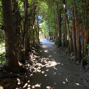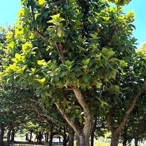 The沖縄の木 フクギ 海洋博公園そば 有名な備瀬のフクギ並木 木漏れ日が綺麗 ネコちゃんも寛いでました🐱 幹が丈夫で葉が密生しているフクギは 台風が多い沖縄で家屋や集落を守る役割を担ってきたそうです