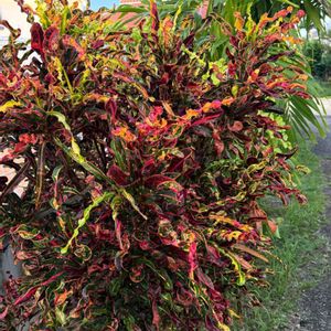 The 沖縄の木 クロトン 夏の商業施設で 鉢植えではよく見かけるけど…地植えでこんなに立派なのは初めて見ました👀 品種名は合ってなかったらごめんなさい🙇♀️ トウダイグサ科 クロトンノキ属 別名 ヘンヨウボク(変葉木) 突然変異しやすい性質らしいです