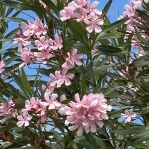 よく見る夾竹桃だけど…青空に映えて とっても綺麗でした もう東京ですが…5週間 沖縄で撮りためお花が まだたくさんあるので 羽田に着いて 首都高の路肩に植えられた夾竹桃は 曇ってたせいかここまで綺麗に見えなかった💦
