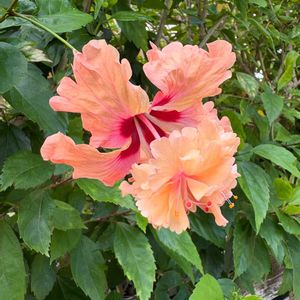 毎日のように見てたハイビスカスフラミンゴさん🦩朝はまだ蕾… 雨上がりの虹も懐かしい🌈 ヤシの横にうっすらと見えますか?
