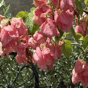 昨日のコウシュンカズラと仲良く咲いてました 学名 Antigonon leptopus 和名 アサヒカズラ(朝日葛) ニトベカズラ(新渡戸葛) 別名 クイーン・ネックレス 科名 タデ科 メキシコ原産の非耐寒性常緑つる植物 ピンク色の可愛らしい萼が花に見える 地下に塊根があり食用になる 花に蜜が多くミツバチなどの蜜源にもなる どうりでたくさんの蜂が群がってました ニトベカズラは 台湾総督府殖産局長を務めた 新渡戸稲造氏を記念して名付けられたそうです