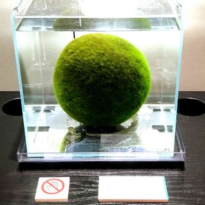 展示されていた巨大マリモ 水の中で回転しているのですね 波やその他の衝撃で破損しても また同じようにまるく育っていくようです