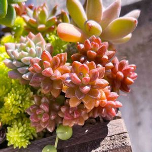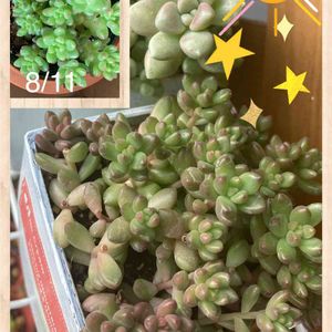 おはようございます♪ 今日は曇り空で肌寒い朝です。 多肉事するにはちょうどいいかな? 久々に🏷つぶつぶの日に参加します🎶 ↖️乙女心さんすこーし色づいてきたけど、なかなかここから進まない⤵︎ 一緒に植えてるグリーンペットのお花とホワイトストーンクロプもかわいい💕 ↙️我が家に初期からいるつぶつぶ軍団 植え替えしてないから、根詰まりしてるのか肥料がキレまくったからなのか、めちゃめちゃいい色しててお気に入りのゾーン💕 右の3つはO'sGardenさんから連れてきたつぶつぶ軍団💕 ⬆️ルビーティント 増やそうと思ってチョンパしたら、しばらく元気なくて…早すぎたかな?と反省してたんだけど、よく見たら残した茎からベビたんが💕めんこすぎ(*˘︶˘*).。.:*♡︎ ➡️ピンクじゃないけどピンクベリー 紅葉が綺麗なのはわかってるんだけど… 増やしたくて増殖計画を開始してしまった…今年の紅葉は期待しないでおこう。うん。 ↘️ベビーフィンガー 大好きなつぶつぶ❤️ この子もいっぱい増やしたい子(〃艸〃)🎶 でも、増殖計画は春まで我慢することにしましたwww pic撮ってて思った! 私はつぶつぶが好きだ〜~~(/≧︎∇︎)/💕