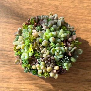 おはようございます。 今日は雨予報☂️ 多肉さんたちは屋根の下へ グリーン多めの寄せ植えを作りました🍀 つぶつぶ感が好きー🥳