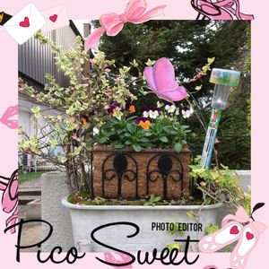 ハンキングにパンジーやビオラなどの 寄せ植えをしました😊 お庭のポールにひっかけました💐 お庭のアクセントに💕