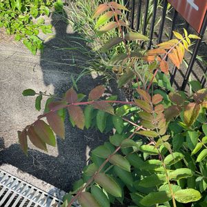 ハゼノキ(櫨)の一部分が紅葉🍁してました。暑さのせい?