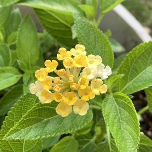 コバノランタナ🌱🌱 去年、強剪定し過ぎて、諦めてたのに、咲いてくれました。 可愛い🤍💛 ▶️ 半耐寒性常緑低木 樹高 20〜80㎝ 開花期 4〜10月 耐寒性 やや弱 耐暑性 強 ▷切戻し 花の先端から2節で切る