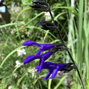 サルビア・ガラニチカ🌱🌱 強い日差しの中、キレイに発色💜した花が咲きました ▶️ 多年草 草丈 100〜150㎝ 開花期 6〜10月 耐寒性 強 耐暑性 強 ▷花が終わった枝から切り戻す ▷株分け 1〜2年毎 春、秋