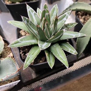 ✤アガベの子株達 笹の雪系が多めです♡ ・広葉笹の雪の子株は先日親株から外しました😊 ・(大阪の知る人ぞ知る?店長が書いた)🏷『ティタノータ』名札の存在感がすごい🤣 狩った時に葉先が傷んていたのに気が付かず💦よく見て買えばよかったと後悔(;´д`) ←大きさしか見てなかった😅 このまま枯れちゃうんじゃないかと心配になって@結藍さんに見てもらったら 『寒さで傷んだんじゃないかな?このまま様子見で!』 と、アドバイスを頂き様子を見ていました。 暖かくなったら枯れの進行も止まり新葉も展開してきて大きくなってきました。゚(゚´▽`゚)゚。良かった〜 どんなチタノタに育つのか楽しみです♡ ・王妃雷神黄中色斑 外葉が枯れて安定せず😥なかなか大きくなりません💦 すぐに☆になりそうなか弱さで:( ;´꒳`;):ビクビク ・ロッキー白山 子株2つ目発見( ˙꒳˙ᐢ )ウィッ✨ ⬇️🏷kyu.アガベ子株