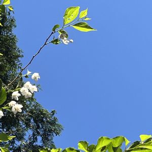 ①7時28分 エゴノキと ②7時32分 青空に白 雲あり ③7時38分 青空な白 ④11時28分 青空とイチョウ 🏷️土曜日はお空の発表会 に参加させていただきます