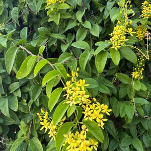朝散歩で初めましてのお花🐕 ͗ ͗ キンレイジュ(金鈴樹) メキシコ カリブ海諸島原産 ノウゼンカズラ科 タチノウゼン属 別名 テコマ・スタンス 英名 イエローベルズ 黄色いラッパ状の花を枝先に鈴なりに咲かせる様子が名前の由来 温暖な地域では開花期間が長く付きも良いので庭木や街路樹として広く利用される