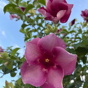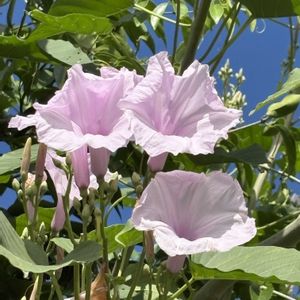 沖縄滞在も残りわずか 日曜 午前中の便で帰ります✈ 撮り溜めた写真が有りすぎて… 帰ってからの投稿もお許しを🙏💦 駐車場の側面にびっしり蔓を絡ませて涼しげに咲いていました ベンガルヤハズカズラ(榜葛刺矢筈葛) 豊かな葉と大きく鮮やかな花で知られる 活発で成長が速い植物