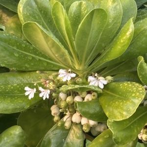 The沖縄の木 クサトベラ(草海桐花) 高さ1〜2mの常緑低木 太平洋からインド洋にかけての熱帯・亜熱帯の海岸やその近くに自生し 日本では薩南諸島以南の南西諸島と小笠原諸島に産する クサトベラ科の中では分布域が広く日本に自生する唯一種 葉は茎の先に集まって互生し 革質でトベラに似て少し大きい 茎は下部が木化するが柔らかいのでクサトベラの名がある