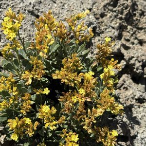 ウコンイソマツ(鬱金磯松) イソマツ科 イソマツ属 草丈10~30cmの低木 草姿や生育環境などイソマツによく似ているが花が黄色であることが異なる 別名 キバナイソマツ 生育地 奄美大島~沖縄(日本固有) 生育環境 海岸の海水が飛沫する石灰岩の岩礁帯に生育 沖縄の隆起さんご礁の海岸では 群落が見られるが 盆栽用に盗掘されることが多く 絶滅危惧種