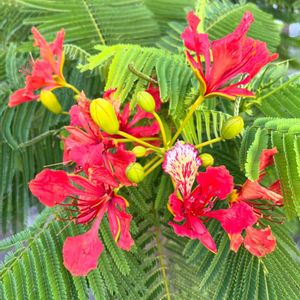 The沖縄の木 華やかな鳳凰木 赤は豊見城の散歩道 オレンジは那覇市内でꙬ꙳