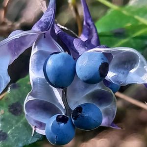 ノササゲ 紫色のさやが裂けて中から青い実が出てきていました。綺麗な色です😍