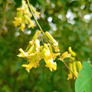 野原と山に黄色いマメ科のお花が咲いてました。 どちらもツル性、色んな場所に絡んで咲いてました。 1⃣2⃣3⃣ ノササゲ(野ささげ)マメ科ノササゲ属 本州〜九州の山地の林縁などに生える。茎は黒紫色を帯びることが多い。葉は3小葉からなり、裏面は白っぽく、まばらに毛がある。頂小葉は長さ3〜15cm、幅2〜6cmの長卵形。花は総状につき、淡黄色で長さ1.5〜2cm。萼は筒形で、萼片はほとんど目立たない。豆果は長さ2〜5cmの倒披針形で、種子のところで膨れて数珠状になる。熟すと紫色になり2裂し、中には3〜5個の種子が入っている。種子は黒紫色で白粉をかぶる。花期は8〜9月。 4⃣5⃣ ヤブツルアズキ(藪蔓小豆)マメ科アズキ属 アズキの原種と言われています。 茎や萼にやや褐色がかった毛が多くあり、小葉は3小葉で頂小葉は3-10cmの狭卵形~卵形で先が急に尖ります。小葉が3裂することもあります。 花は葉腋から伸びる花茎に総状に2-10個付き、幅15-18mm、竜骨弁は1/2~3/4回転し、右側の翼弁がそれを抱きます。果実は4-9cmの線形。 🏷 日曜ビタミンカラー♪