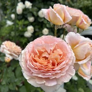 アブラハムダービー房咲きは反則なくらいのボリューム。庭中が華やかになってきました。