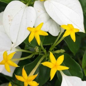 初めて見る花です。小さい星型⭐️の花が可愛らしい。白い葉は苞というのでしょうか?