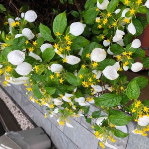 梅雨に清々くシリーズⅡ お庭のコンロンカ 黄色の星花と白いがく片のコラボ 魅せ方が凄いっ