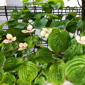 おはようございます😊 用事あって休み 出先からです😆 お隣の花の一枚💠鉢植えなので小さいです 💠ハンカチの花🌼 間違っていたら教えてください💚