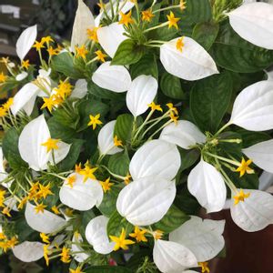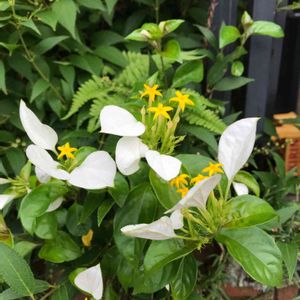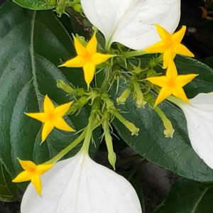 コンロンカ ⚪️💛 別名:ハンカチの花 白いがく片が良く目立っていますが、小さな黄色い花が星形ですね🥰 星と言えば、今日は七夕🎋ですね😃 七夕→天の川 銀河🌌🤩 何か願い事を…💕
