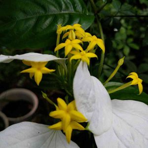 🚶♀️白いのががく苞、黄色いのが花らしい 緑、白のなかで星形の黄色が 光って見えて可愛いです