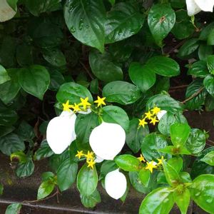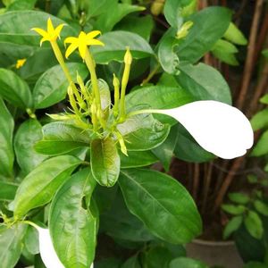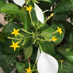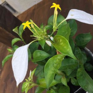 🍀崑崙花🍀 難しい漢字です🤔 崑崙山というのがあるそうです🏔️ コンロンカと読みます🤗 別名 ハンカチの花 白い花のように見える葉❓萼❓ほう❓がハンカチのようなんです🎶 室内に入れるにあたり剪定しました🖐️ 枝を水に挿していたら一部枯れたりしましたが花が咲いてくれました👏👏👏 京都府立植物園(サイトよりコピペ) コンロンカ Mussaenda parviflora アカネ科 種子島、屋久島、沖縄、台湾に分布します。半つる性の常緑低木で高さ1から1.5メートルくらいになります。ツル状に伸びた枝は非常に長くなります。本属の植物は約200種類あり、主に熱帯アジア、熱帯アフリカ、太平洋諸島に分布しています。東南アジアやハワイなどの熱帯地方では街路樹や庭木として利用されています。