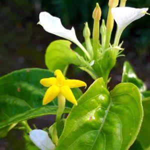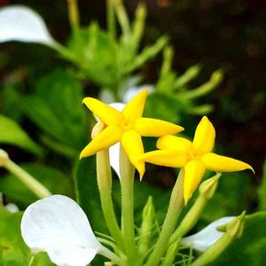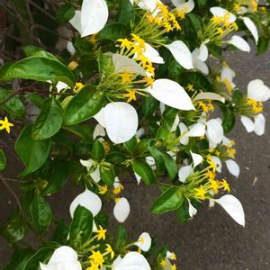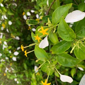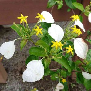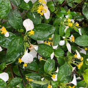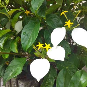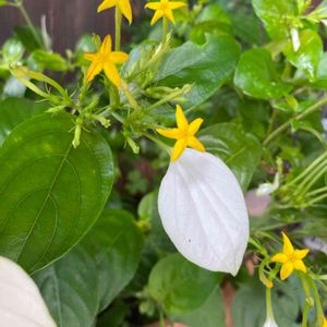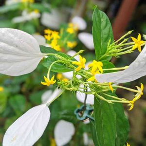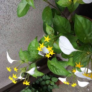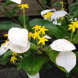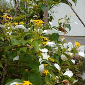 ハンカチの花(コンロンカ) 白い葉っぱと黄色い可愛らしい花と緑の葉っぱのコントラストに目を惹かれました。