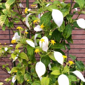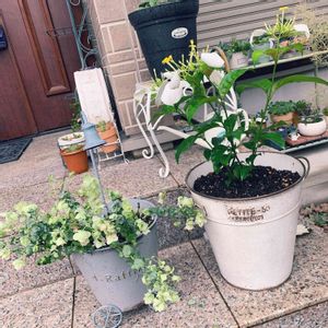 オレガノケントビューティー 雨で倒れてしまった。 この後、切り戻しをしました。 復活しておくれ コンロンカは別名ハンカチの花 白い葉っぱが気になってお迎え 外では冬越しは出来ないそうなので地植えを断念