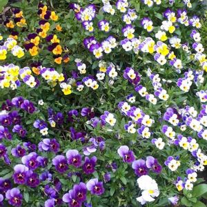 いろんな 顔のビオラちゃん🎵 全部 こぼれ種から 咲きました✨